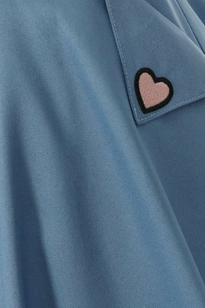The midi flared skirt has front bunny patch detail, side hearts patch detail on pockets, a waist accentuating shape and it fastens with a zipper at the back.