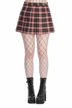 The gothic skirt has tartan print, buckle with eyelets detailings, pleats detail and a flattering fit.