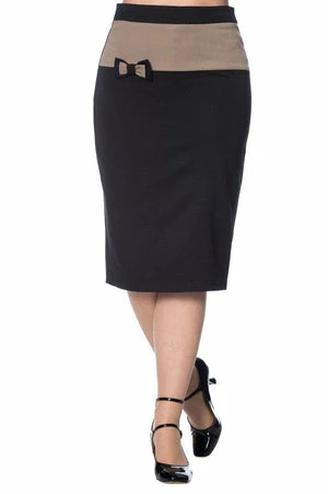 The vintage skirt has a front bow detail, back slit, a figure accentuating shape and it fastens at the front with buttons.