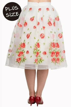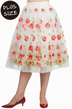 You’ll love this crash hot, rockabilly, ladies, plus size skirt made by Banned, the “dark moon skirt”, with an attractive roses print, available in black or white.
