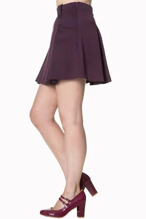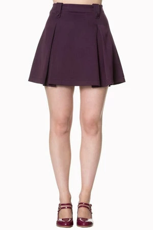 A wicked rockabilly ladies mini skirt from Banned Apparel the daylight awaits skirt, available in black or purple.