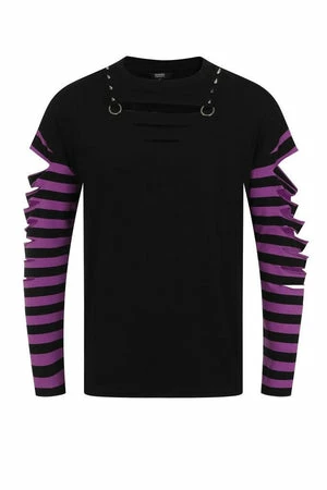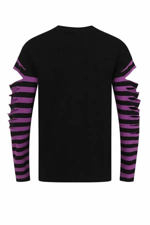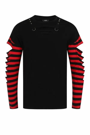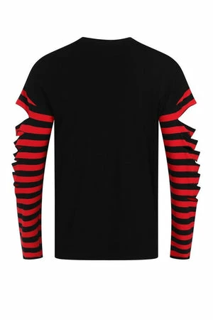 The top has striped design on sleeves, crew neckline, slashed detailing on sleeves and neckline, long sleeves and a regular fit.
