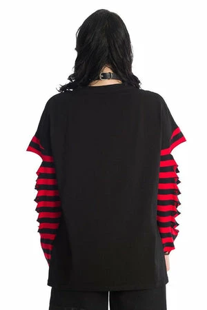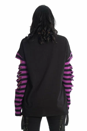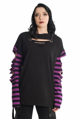This tempting black gothic top from Banned Apparel, will match perfectly with a killer choker or statement hosiery. The style is available in black-red or black-purple color.