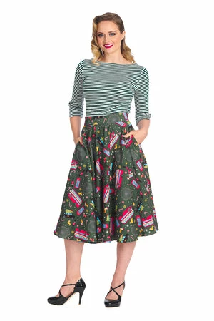 For an added glamorous retro look, wear this pretty rockabilly top from Banned Apparel, with a pencil skirt or straight pants! The style is available red-white, dark-green or green color.