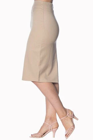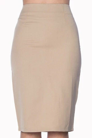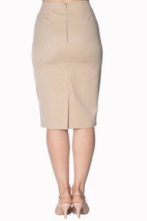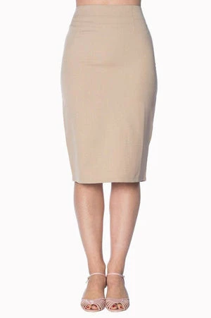 The vintage pencil skirt has a figure accentuating shape, small slit at the back and it fastens at the back with a zipper.