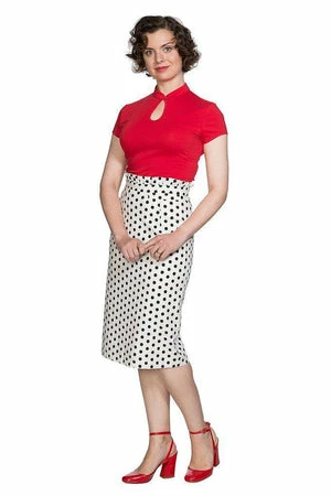 This tantalizing rockabilly skirt from Banned Apparel, will keep you on trend all season long! The style is available in white or black color.
