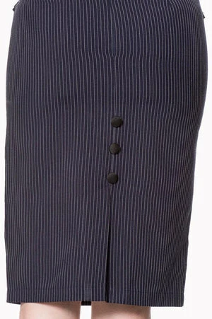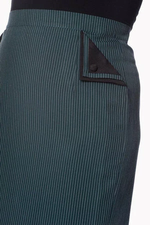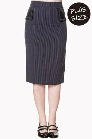 The vintage pencil skirt has stripes print, double pocket details, a figure accentuating shape, small slit at the back and it fastens at the back with a zipper.