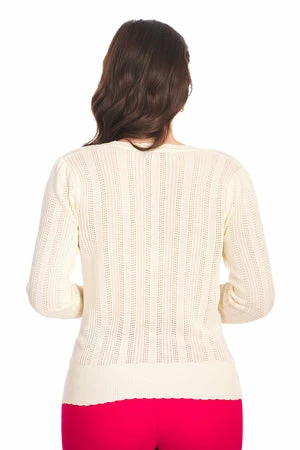 The vintage top has pointelle design, a V-neckline, long sleeves and a regular fit.