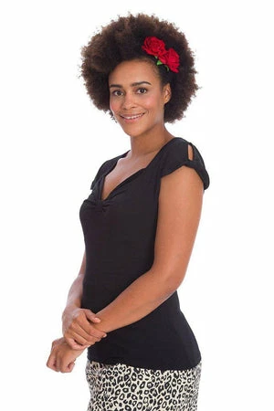 Pair this exquisite rockabilly top from Banned Apparel, with your favorite skirts or pants for the ultimate weekend look. The style is available in several appealing colors and up to plus sizes also.