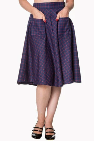 Show off your lovely curves and rock this desirable rockabilly skirt from Banned Apparel, the perfect skirt for this season. The style is available in red and blue and also up to plus sizes.