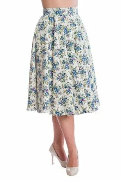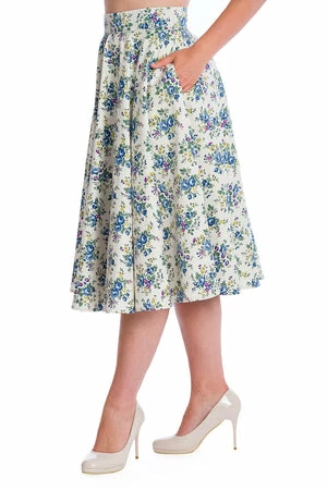 The vintage A-line skirt has allover floral print, side pockets and it fastens with a hidden zipper at the back.