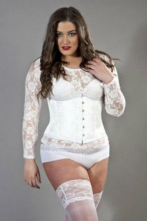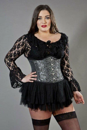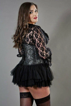 This Candy plus size underbust steel boned waist training corset in brocade has clip fastening and back lace fastening with modesty panel.