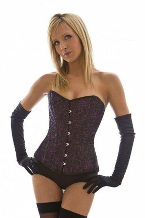 This Elegant overbust steel boned brocade corset has clip fastening and back lace fastening with modesty panel.