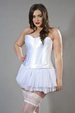 This Glamour overbust satin plus size corset has zip fastening, laces and modesty panel at the back.
