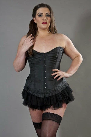 This Petra steel boned long line taffeta overbust plus size corset has clip fastening, laces and modesty panel at the back.