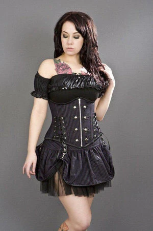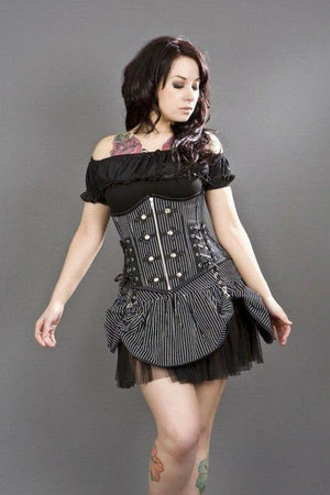 This Pirate striped mini skirt has black mesh underlay, belt loop D-rings/clips, a flattering fit and it fastens with a back zipper.