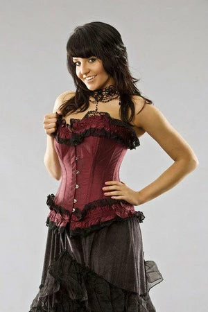 This glamorous steampunk or gothic corset from Burleska, is a necessary addition for an extra touch of vintage to your look. The design is available in tropical green taffeta, purple taffeta and burgundy taffeta.