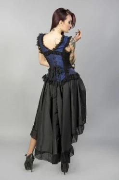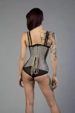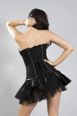 Burleska Traditional Underbust Spiral Boning Corset In Black Satin With Silver Petal Brocade
