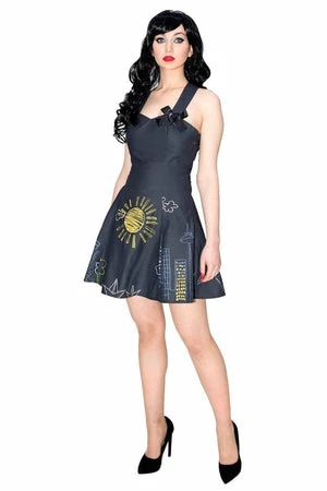 Dr Faust Pentagrams On Collar Long Nu Goth Black Maxi Dress – Giuliana