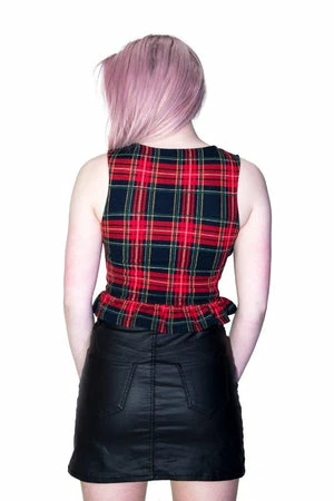 The crop top has a black and red checkered tartan print, a V-neckline and a regular fit.