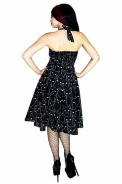 Dr Faust Grey Sugar Skulls Halterneck Black Mini Dress – Medea