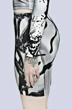 A hard-hitting alternative skirt from Long Clothing, designed in collaboration Pussykrew, with an eye-popping gothic art print.