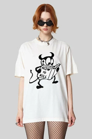 The t-shirt has ”How To Kill” front white print, crew neckline, short sleeves and a regular fit.