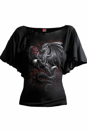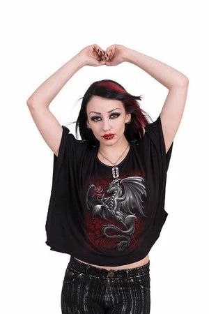 This voluptuous black gothic top from Spiral Clothing, with fantasy dragon rose print, is the perfect gothic piece to carry you through the whole year. Be the omen.